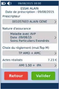 Sachez que le choix du règlement Tiers payant AMO + AMC ne peut être sélectionné que si la complémentaire est présente sur la carte vitale du patient.