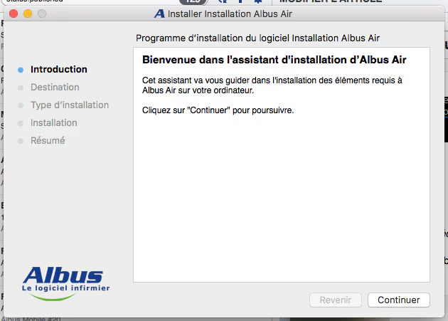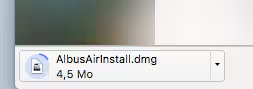 AlbusAirInstall.dmg se télécharge en bas de page du navigateur. Cliquez dessus pour lancer l'installation.