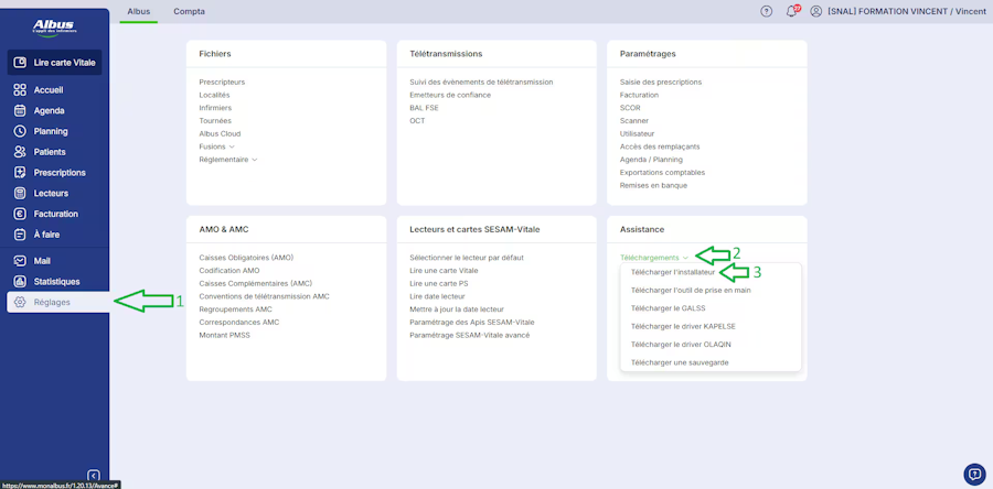 Commencez par vous connecter sur votre compte en passant par l'adresse suivante https://www.monalbus.fr puis allez dans réglages > Assistance > Téléchargements > Télécharger l'installateur.