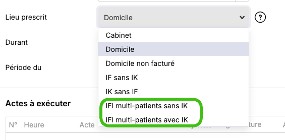 Dans le menu déroulant “Lieu Prescrit”, il existe deux choix :
