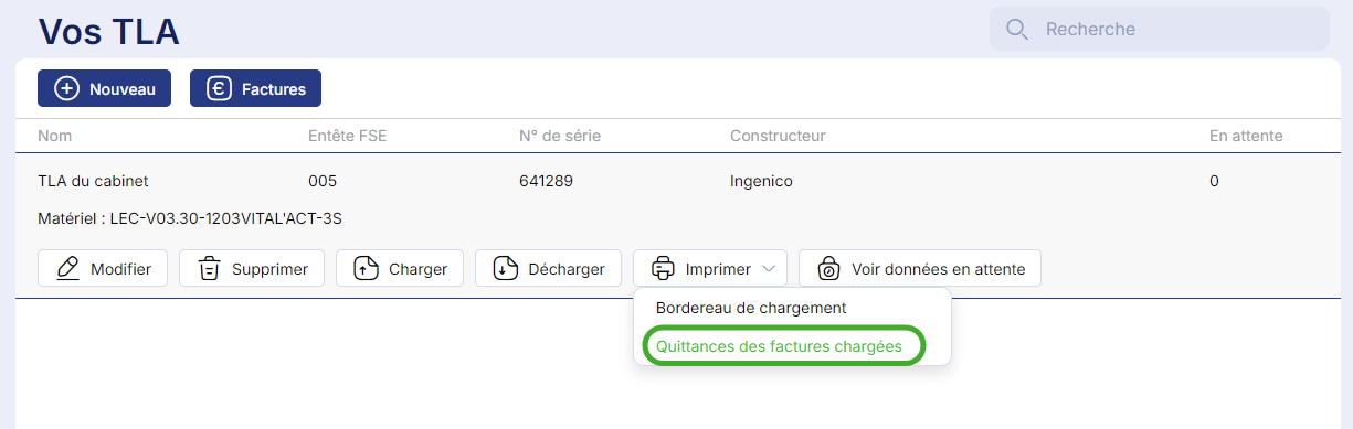 Dans le cadre de la facturation en SV Visite, l'impression de la quittance est proposée au moment du chargement du TLA. Vous n'avez pas pu le faire à ce moment-là ? Pas d'inquiétude, vous pouvez retrouver les quittances dans le menu Impression du menu TLA
