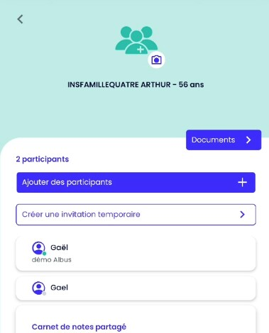 Ouvrez l'application Albus depuis votre smartphone et cherchez la fiche du patient concerné.